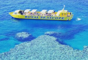 Sharm El-Sheikh Boat Sea Scope going under crystal clear water of the Red Sea. You discover the rich sea life deeply under water.The tour takes place in an air-conditioned submarine, an excellent alternative to diving.