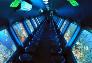 Watch vibrant marine life and coral reefs through large viewing windows.